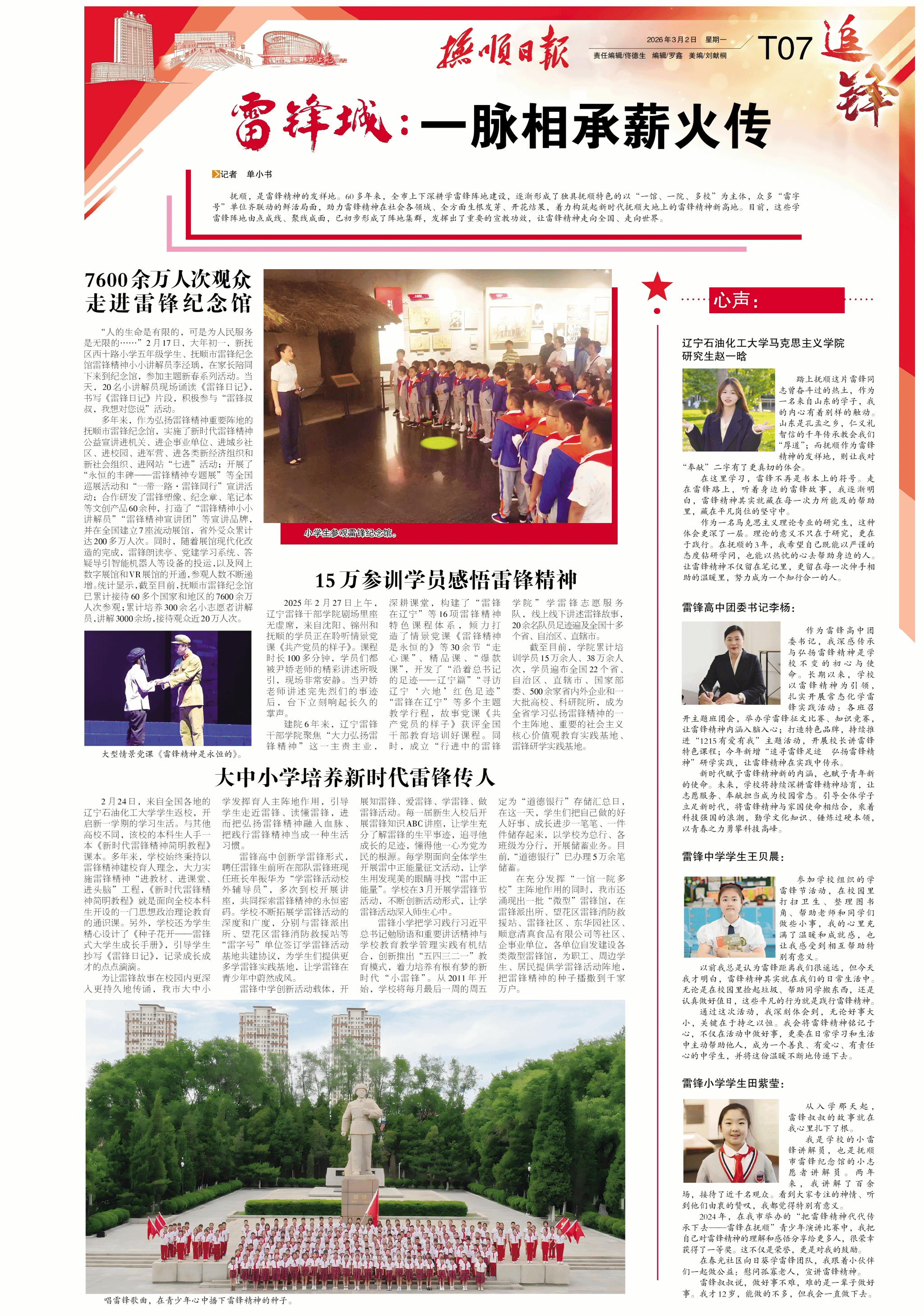 編者按:近日,《撫順日報》第七版、今撫順微信公眾號等媒體平臺對我校馬克思主義學(xué)院研究生趙一晗撰寫的“雷鋒城:一脈相承薪火傳”心聲體會進(jìn)行了轉(zhuǎn)載報道。現(xiàn)將相關(guān)報道轉(zhuǎn)載如下: