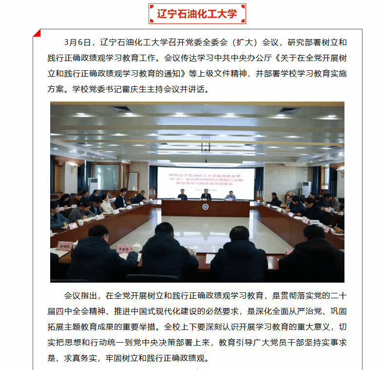 編者按:在全黨開(kāi)展樹(shù)立和踐行正確政績(jī)觀學(xué)習(xí)教育,是黨中央著眼黨和國(guó)家事業(yè)發(fā)展全局作出的重要部署,對(duì)于推動(dòng)“十五五”開(kāi)好局、起好步,為以中國(guó)式現(xiàn)代化全面推進(jìn)強(qiáng)國(guó)建設(shè)、民族復(fù)興偉業(yè)提供有力保障,具有重大而深遠(yuǎn)的意義。連日來(lái),遼寧高校陸續(xù)召開(kāi)會(huì)議,深入學(xué)習(xí)貫徹習(xí)近平總書(shū)記關(guān)于樹(shù)立和踐行正確政績(jī)觀的重要論述,傳達(dá)學(xué)習(xí)中央及省委黨的建設(shè)工作領(lǐng)導(dǎo)小組會(huì)議精神,加強(qiáng)組織領(lǐng)導(dǎo),壓緊壓實(shí)責(zé)任,推動(dòng)學(xué)習(xí)教育有力有序開(kāi)展。“遼寧高校黨建”微信公眾號(hào)收錄了我校進(jìn)展動(dòng)態(tài),現(xiàn)將相關(guān)報(bào)道轉(zhuǎn)載如下: