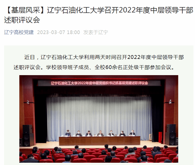 編者按:近日,遼寧高校黨建微信公眾號對我校召開2022年度中層領(lǐng)導(dǎo)干部述職評議會進行了宣傳報道。現(xiàn)將相關(guān)報道轉(zhuǎn)載如下:
