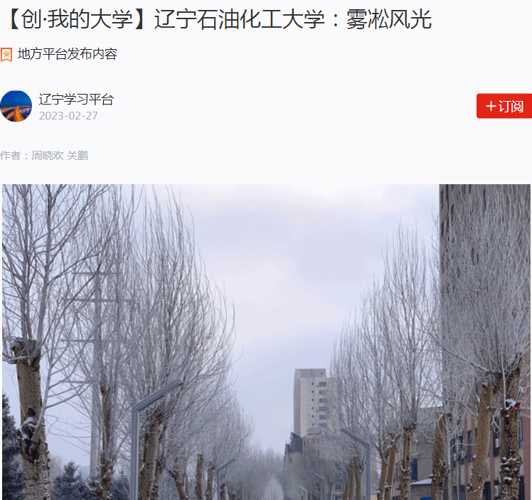 編者按:近日,學(xué)習(xí)強(qiáng)國(guó)遼寧學(xué)習(xí)平臺(tái)、人民日?qǐng)?bào)客戶端·人民號(hào)等媒體平臺(tái)對(duì)我校霧凇風(fēng)光美景進(jìn)行了宣傳報(bào)道。現(xiàn)將相關(guān)報(bào)道轉(zhuǎn)載如下: