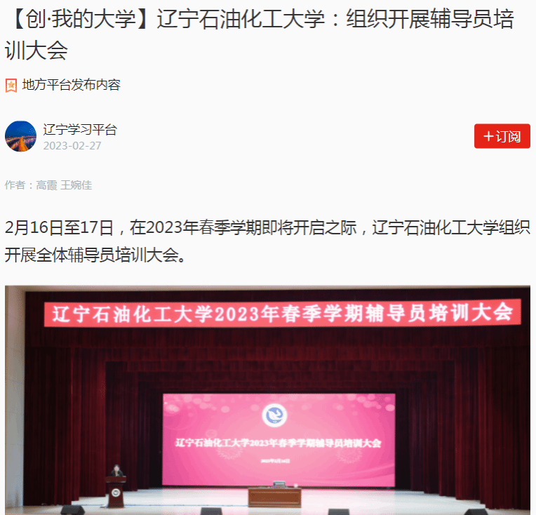 編者按:近日,學習強國遼寧學習平臺、遼寧日報·北國號、人民日報客戶端·人民號等媒體平臺對我校在2023年春季學期即將開啟之際,組織開展全體輔導員培訓大會進行了宣傳報道。現(xiàn)將相關報道轉(zhuǎn)載如下: