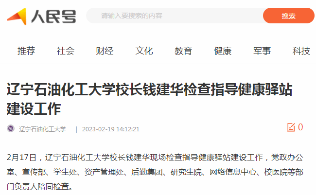 編者按:近日,遼寧日?qǐng)?bào)·北國(guó)號(hào)、人民日?qǐng)?bào)客戶端·人民號(hào)等媒體平臺(tái)對(duì)我校校長(zhǎng)錢(qián)建華現(xiàn)場(chǎng)檢查指導(dǎo)健康驛站建設(shè)工作進(jìn)行了宣傳報(bào)道。現(xiàn)將相關(guān)報(bào)道轉(zhuǎn)載如下: