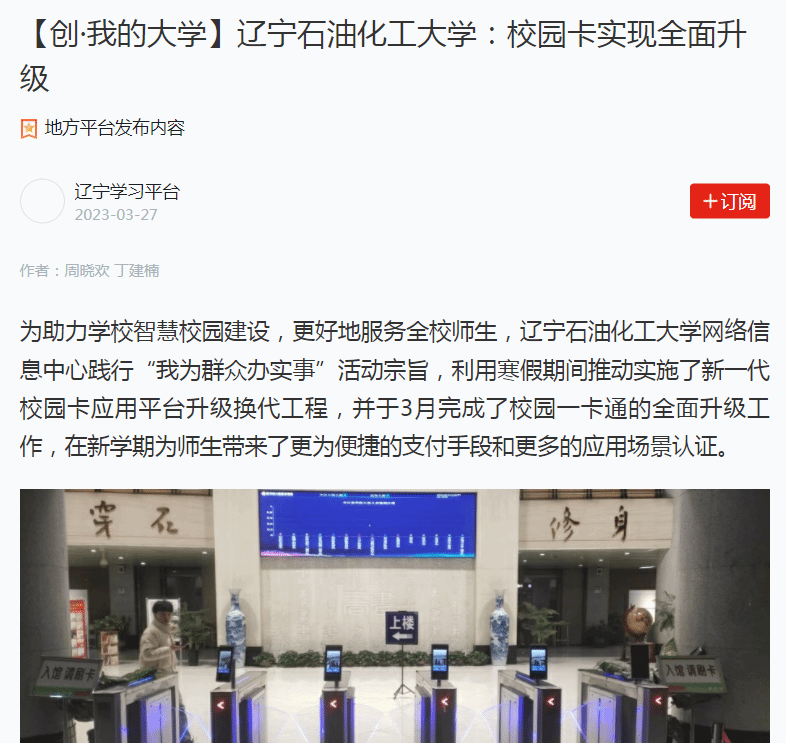 編者按:近日,學(xué)習(xí)強國遼寧學(xué)習(xí)平臺、人民日報客戶端·人民號、遼寧日報·北國號等媒體平臺對我校網(wǎng)絡(luò)信息中心踐行“我為群眾辦實事”活動宗旨,利用寒假期間推動實施了新一代校園卡應(yīng)用平臺升級換代工程,并于3月完成了校園一卡通的全面升級工作,在新學(xué)期為師生帶來了更為便捷的支付手段和更多的應(yīng)用場景認(rèn)證進行了宣傳報道。現(xiàn)將相關(guān)報道轉(zhuǎn)載如下: