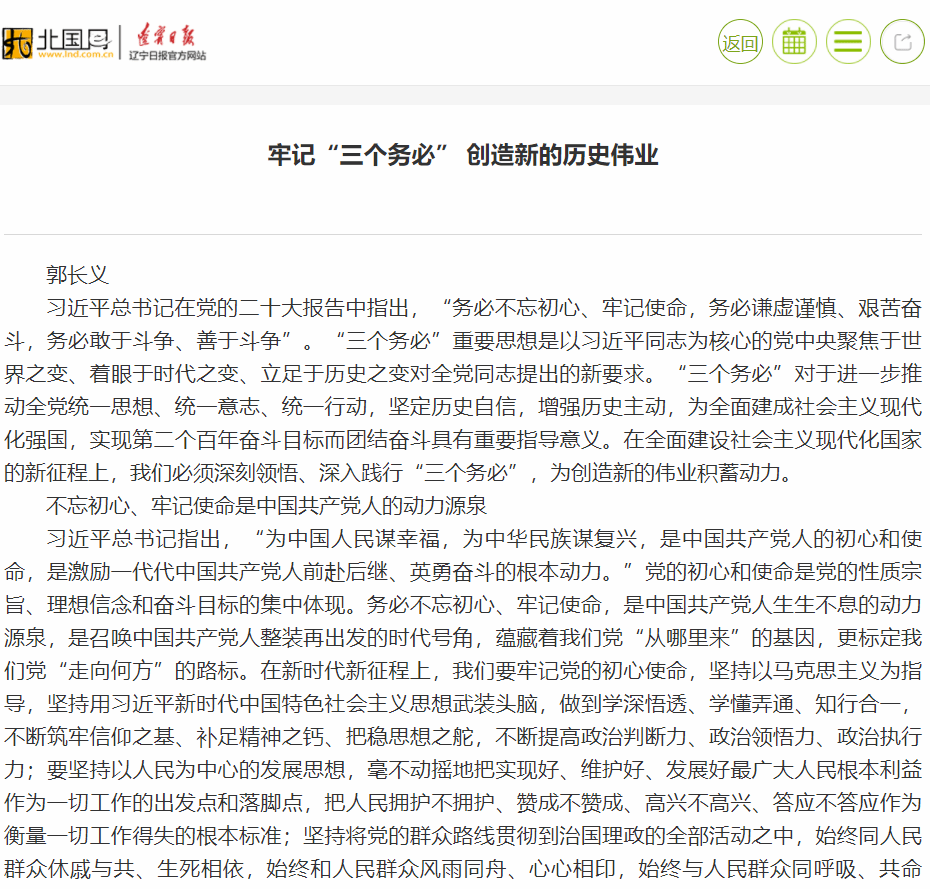 編者按:近日,遼寧日報(bào)·北國網(wǎng)對我校黨委書記郭長義撰寫的文章《牢記“三個(gè)務(wù)必” 創(chuàng)造新的歷史偉業(yè)》進(jìn)行了宣傳報(bào)道。現(xiàn)將相關(guān)報(bào)道轉(zhuǎn)載如下: