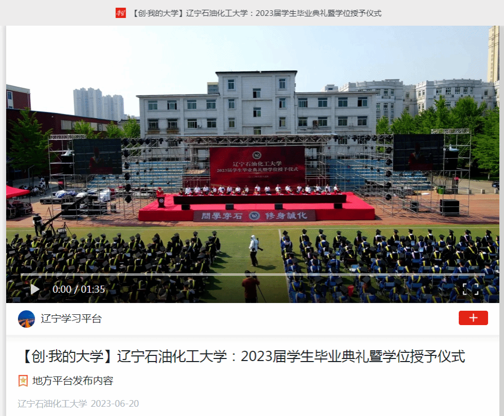 編者按:近日,學(xué)習(xí)強國遼寧學(xué)習(xí)平臺、遼寧日報·北國號、人民日報客戶端·人民號等媒體平臺對我校2023屆學(xué)生畢業(yè)典禮暨學(xué)位授予儀式以視頻的形式進行了宣傳報道。現(xiàn)將相關(guān)報道轉(zhuǎn)載如下: