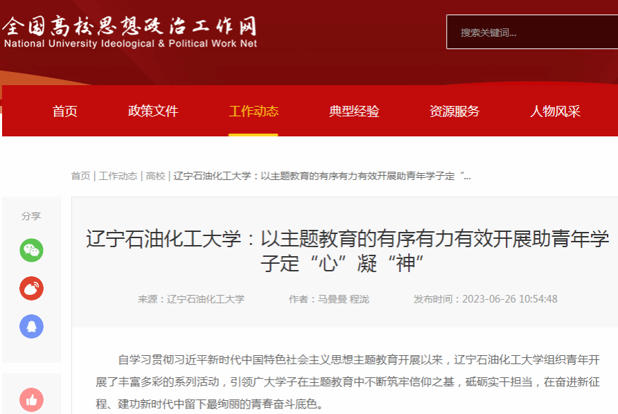 編者按:近日,全國高校思想政治工作網(wǎng)、遼寧日報·北國號對我校組織青年開展了豐富多彩的系列活動,引領廣大學子在主題教育中不斷筑牢信仰之基,砥礪實干擔當,在奮進新征程、建功新時代中留下最絢麗的青春奮斗底色進行了宣傳報道。現(xiàn)將相關報道轉載如下: