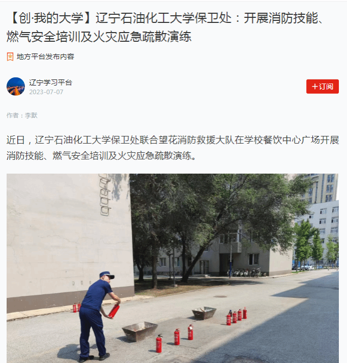 編者按:近日,學習強國遼寧學習平臺、遼寧日報·北國號、人民日報客戶端·人民號對我校保衛(wèi)處聯(lián)合望花消防救援大隊在學校餐飲中心廣場開展消防技能、燃氣安全培訓及火災應急疏散演練進行了宣傳報道。現(xiàn)將相關(guān)報道轉(zhuǎn)載如下: