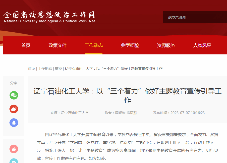 編者按:近日,全國高校思想政治工作網(wǎng)、遼寧日報(bào)·北國號對我校黨委按照中央、省委有關(guān)部署要求,全面發(fā)力、多措并舉,切實(shí)做到主題教育開展的有序有力、見行見效,宣傳工作做得有聲有色、如火如荼進(jìn)行了宣傳報(bào)道。現(xiàn)將相關(guān)報(bào)道轉(zhuǎn)載如下: