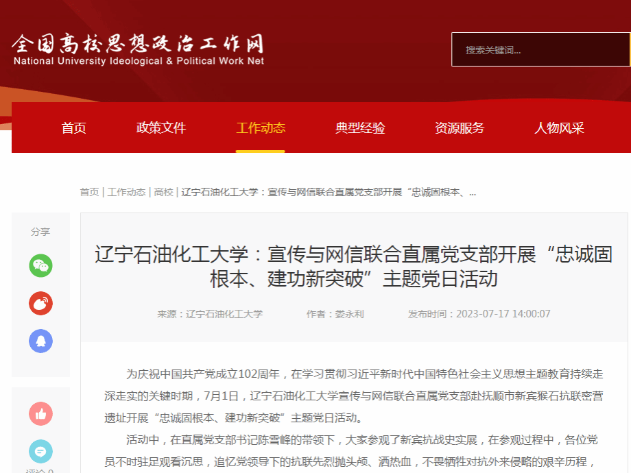 編者按:近日,全國高校思想政治工作網(wǎng)、遼寧日報·北國號等媒體平臺對我校宣傳與網(wǎng)信聯(lián)合直屬黨支部開展“忠誠固根本、建功新突破”主題黨日活動進行了宣傳報道。現(xiàn)將相關報道轉載如下:
