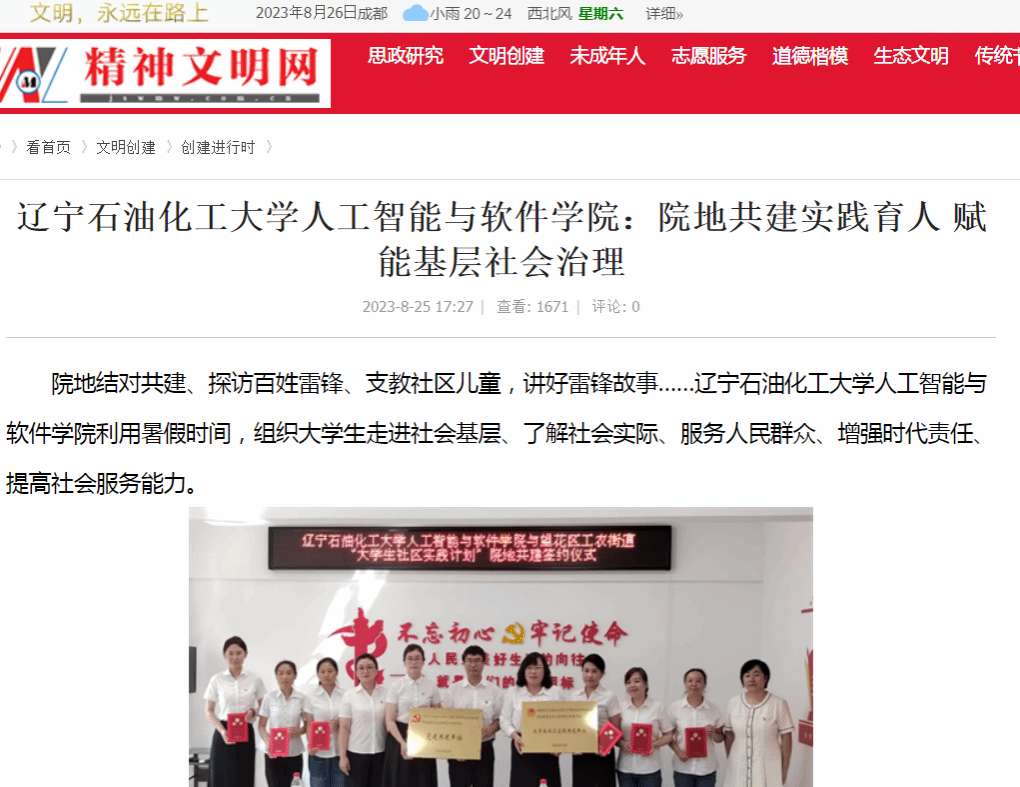 編者按:近日,精神文明網、遼寧日報·北國號、人民日報客戶端·人民號等媒體平臺對我校人工智能與軟件學院利用暑假時間,組織大學生走進社會基層、了解社會實際、服務人民群眾、增強時代責任、提高社會服務能力進行了宣傳報道。現將相關報道轉載如下: