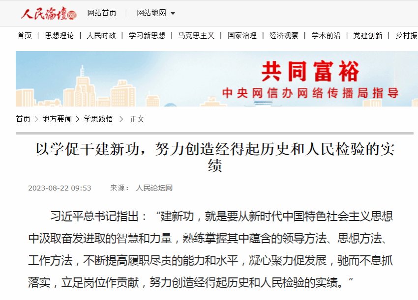 編者按:近日,光明日報客戶端、人民論壇網刊登了我校黨委書記郭長義撰寫的理論文章《以學促干建新功,努力創造經得起歷史和人民檢驗的實績》。現將原文轉載如下: