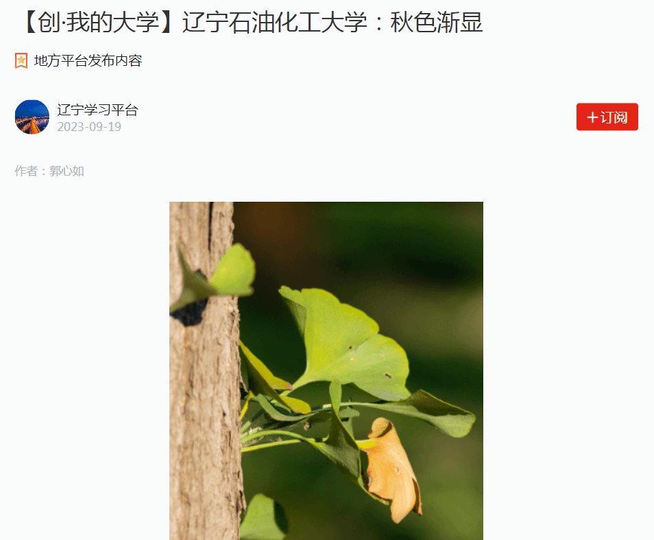 編者按:近日,學習強國遼寧學習平臺對我校新媒體中心的學生郭心如拍攝的校園景色進行了宣傳報道。現將相關報道轉載如下: