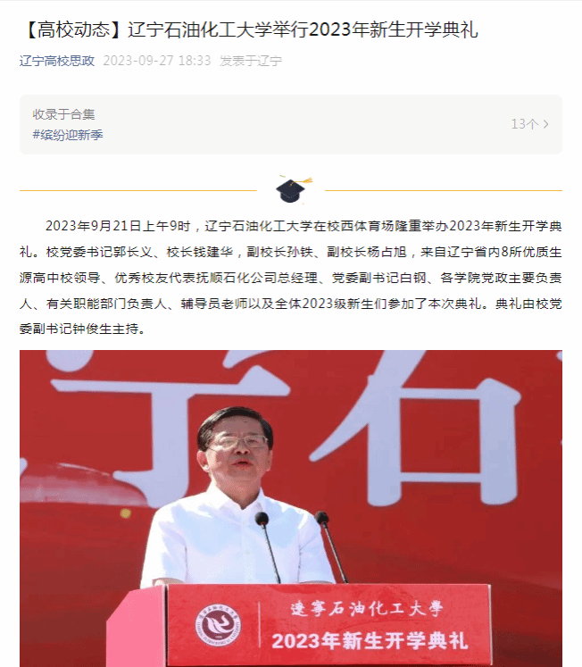 編者按:近日,遼寧高校思政微信公眾號對我校在校西體育場隆重舉辦2023年新生開學典禮進行了宣傳報道。現將相關報道轉載如下: