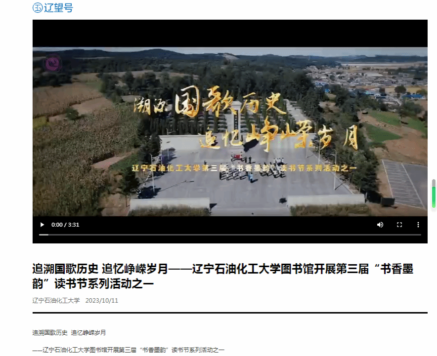 編者按:近日,人民日報客戶端·人民號、遼寧日報·遼望號對我校開展的第三屆“書香墨韻”讀書節系列活動之“溯源國歌歷史,追憶崢嶸歲月”活動進行了宣傳報道。現將相關報道轉載如下: