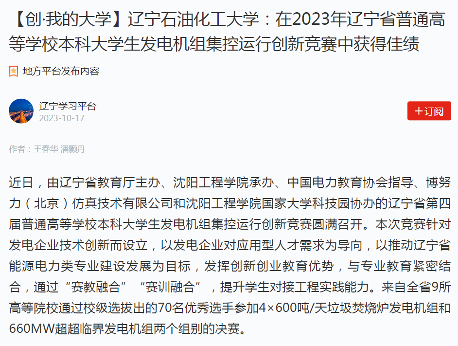 編者按:近日,學習強國遼寧學習平臺、遼寧日報·遼望號等媒體平臺對我校在2023年遼寧省普通高等學校本科大學生發電機組集控運行創新競賽中獲得佳績進行了宣傳報道。現將相關報道轉載如下: