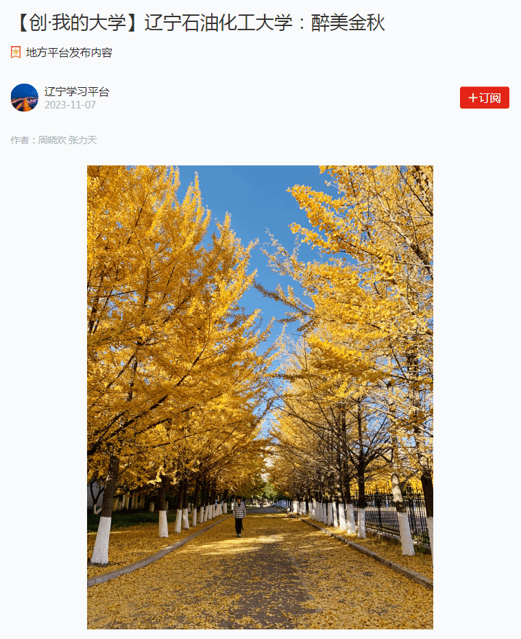 編者按:近日,學習強國遼寧學習平臺對我校秋季校園美景,以圖集形式進行了宣傳報道。現將相關報道轉載如下:
