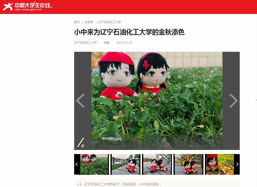 編者按:近日,教育部中國大學生在線網站以《小中來為遼寧石油化工大學的金秋添色》為題,對我校的校園秋色以圖集形式進行了宣傳報道。現將相關報道轉載如下: