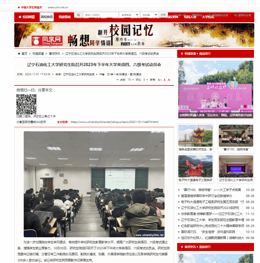 中國大學生網:https://www.universitychina.net/campus/news/20231101/144970.html