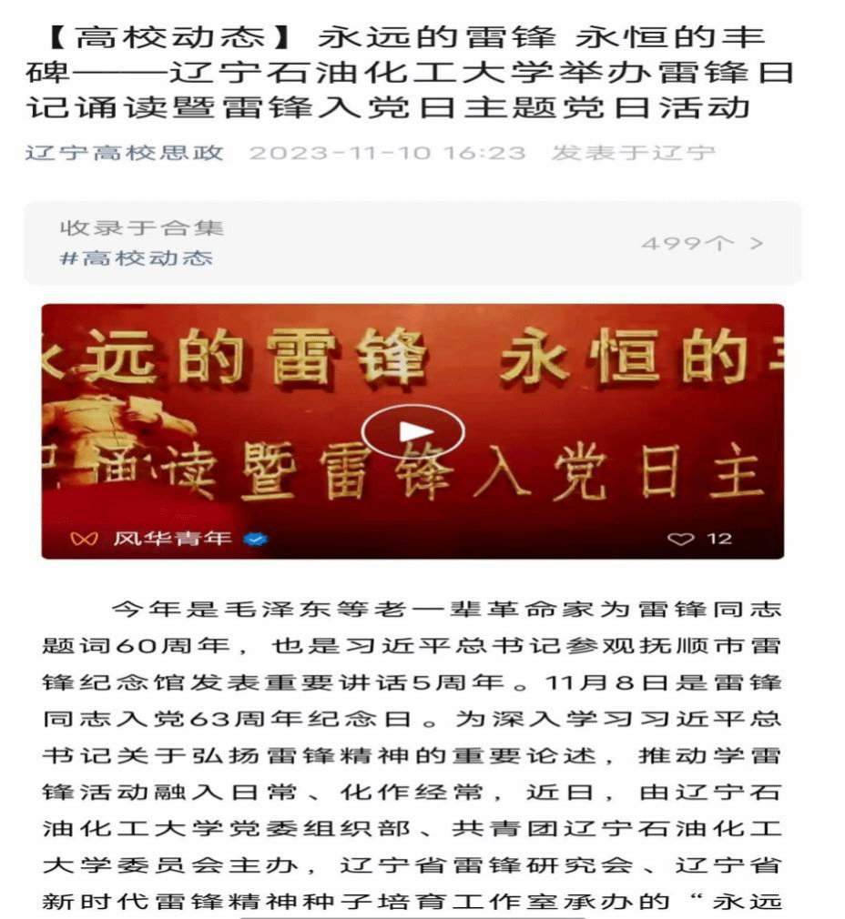 編者按:近日,遼寧高校思政、北斗融媒等媒體平臺對我校舉辦雷鋒日記誦讀暨雷鋒入黨日主題黨日活動進行了宣傳報道。現將相關報道轉載如下: