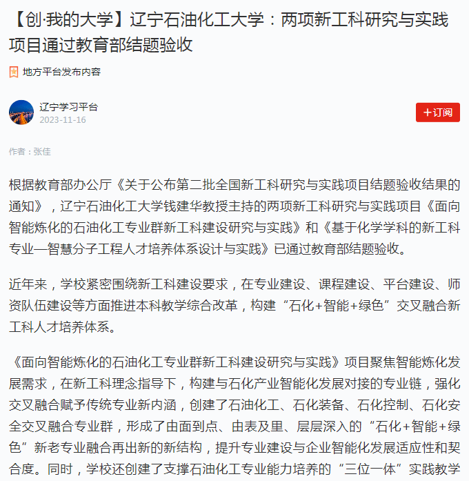 編者按:近日,學習強國遼寧學習平臺、人民日報客戶端·人民號、遼寧日報·遼望號、中國大學生網等媒體平臺對我校兩項新工科研究與實踐項目通過教育部結題驗收進行了宣傳報道,現將相關報道轉載如下: