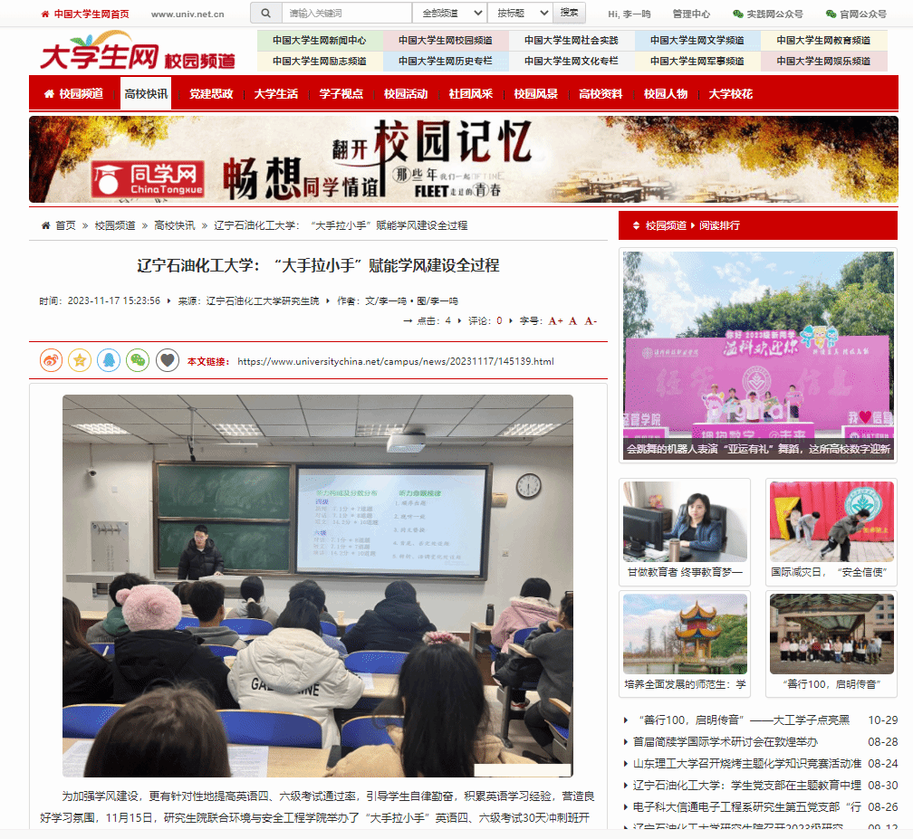 中國大學生網:https://www.universitychina.net/campus/news/20231117/145139.html