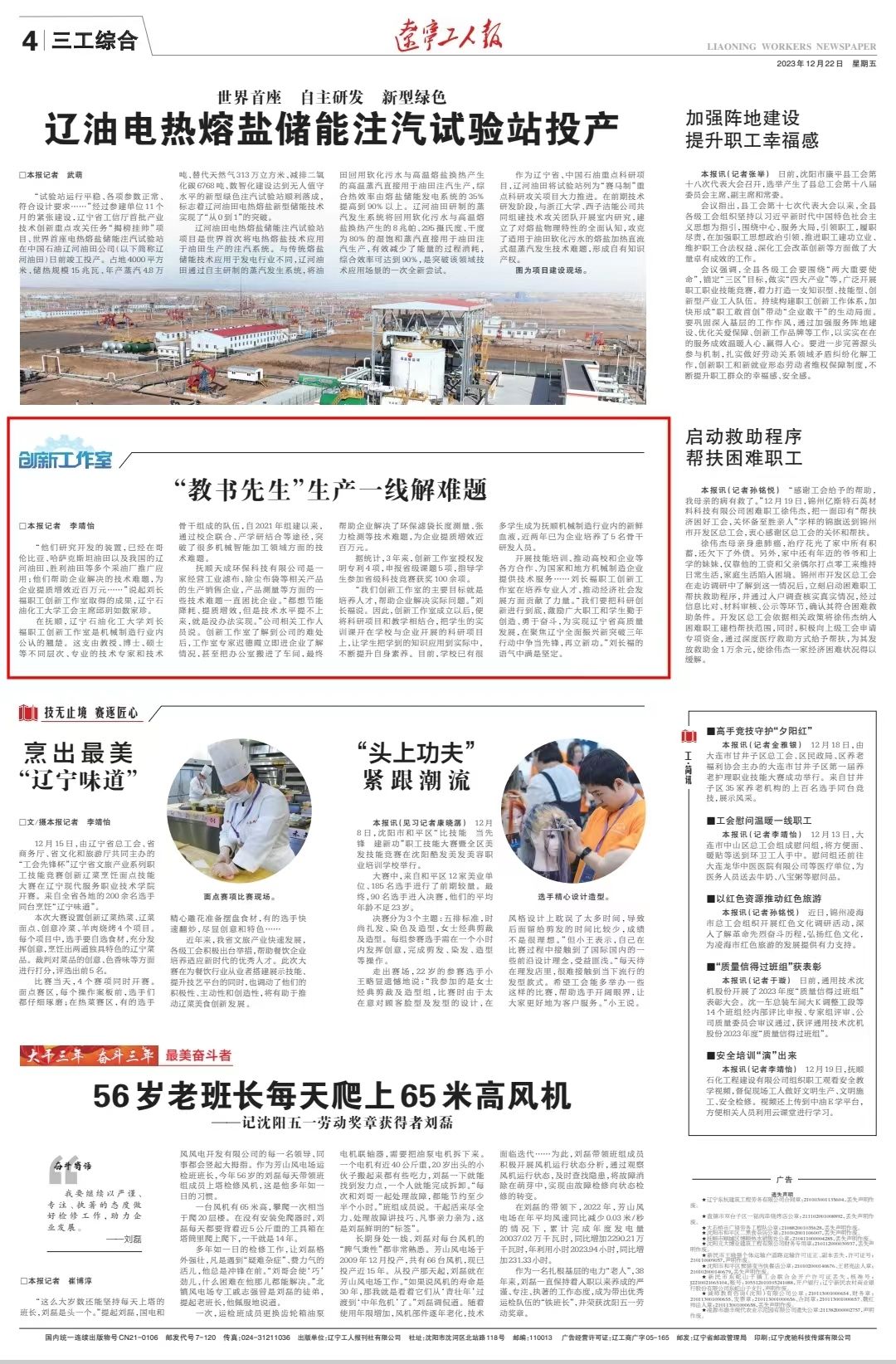 編者按:12月22日,遼寧工人報以《“教書先生”生產一線解難題》為題,對我校劉常福職工創新工作室這支隊伍培養人才,通過校企聯合、產學研結合等途徑,幫助企業解決實際問題的事跡進行了宣傳報道,現將相關報道轉載如下: