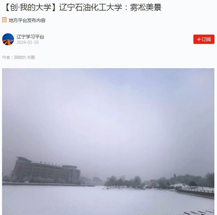編者按:近日,我校在霧淞美景的裝飾下,校園變成了美輪美奐的童話世界。教育部中國大學生在線、學習強國遼寧學習平臺、遼寧日報·遼望號、人民日報客戶端·人民號對我校的美麗風景圖集進行了宣傳報道,現將相關報道轉載如下: