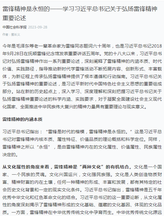 編者按:9月28日,學習強國主平臺對我校黨委書記郭長義撰寫的文章《雷鋒精神是永恒的——學習習近平總書記關于弘揚雷鋒精神重要論述》進行了宣傳報道,現將相關報道轉載如下: