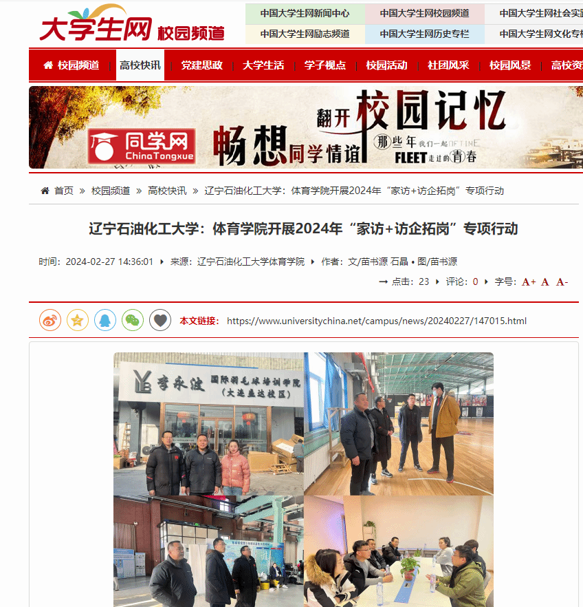 編者按:近日,中國大學生網對我校體育學院開展2024年“家訪+訪企拓崗”專項行動進行了宣傳報道。現將相關報道轉載如下: