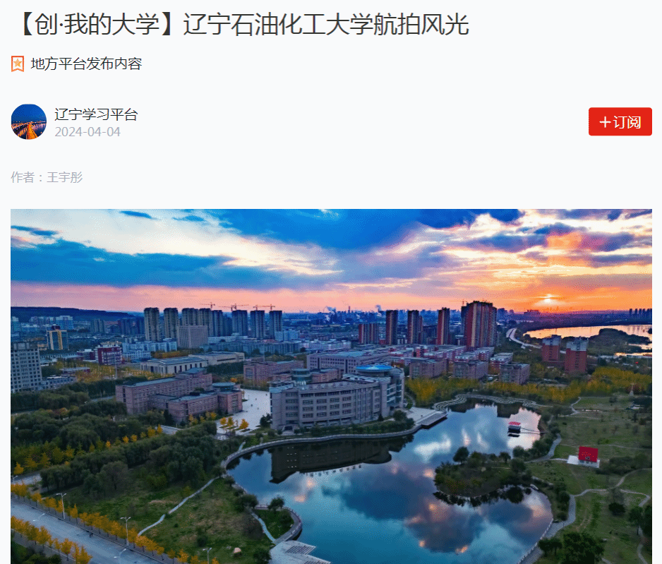 編者按:近日,學習強國遼寧學習平臺對我校王宇彤老師的航拍校園美景以圖集形式進行了宣傳報道,現將相關報道轉載如下: