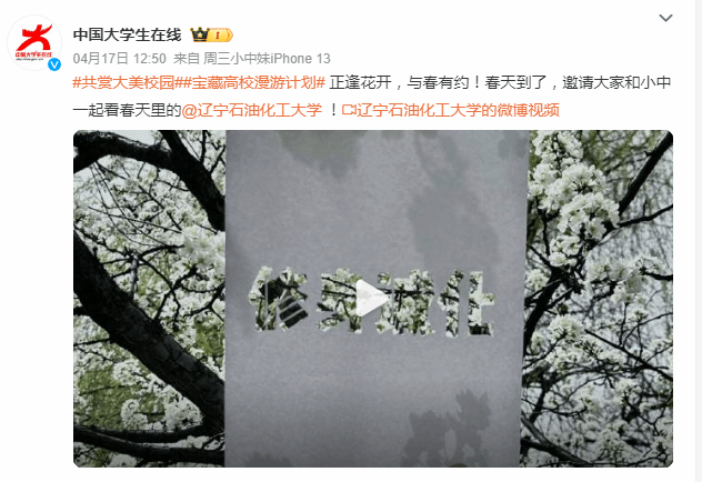 編者按:近日,教育部中國大學生在線官方微博、人民日報客戶端·人民號、遼寧日報·遼望號等媒體平臺對我校新媒體中心學生拍攝的學校創意春景視頻進行了宣傳報道。現將相關報道轉載如下: