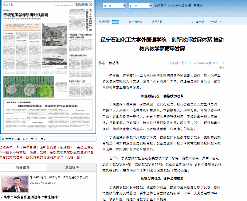 編者按:4月3日,光明日報第09版以《遼寧石油化工大學外國語學院:創新教師發展體系 推動教育教學高質量發展》為題,對我校智軟學院書記戴功偉撰寫的文章進行了宣傳報道。現將相關報道轉載如下:
