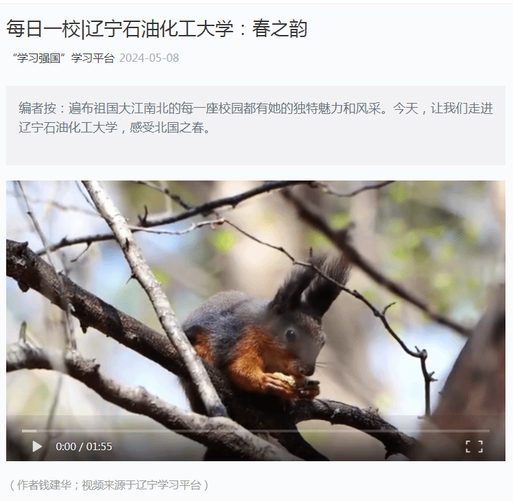 編者按:遍布祖國大江南北的每一座校園都有她的獨特魅力和風采。5月8日,學習強國主平臺展示了我校校長錢建華導演航拍的視頻《春之韻》。現將相關報道轉載如下: