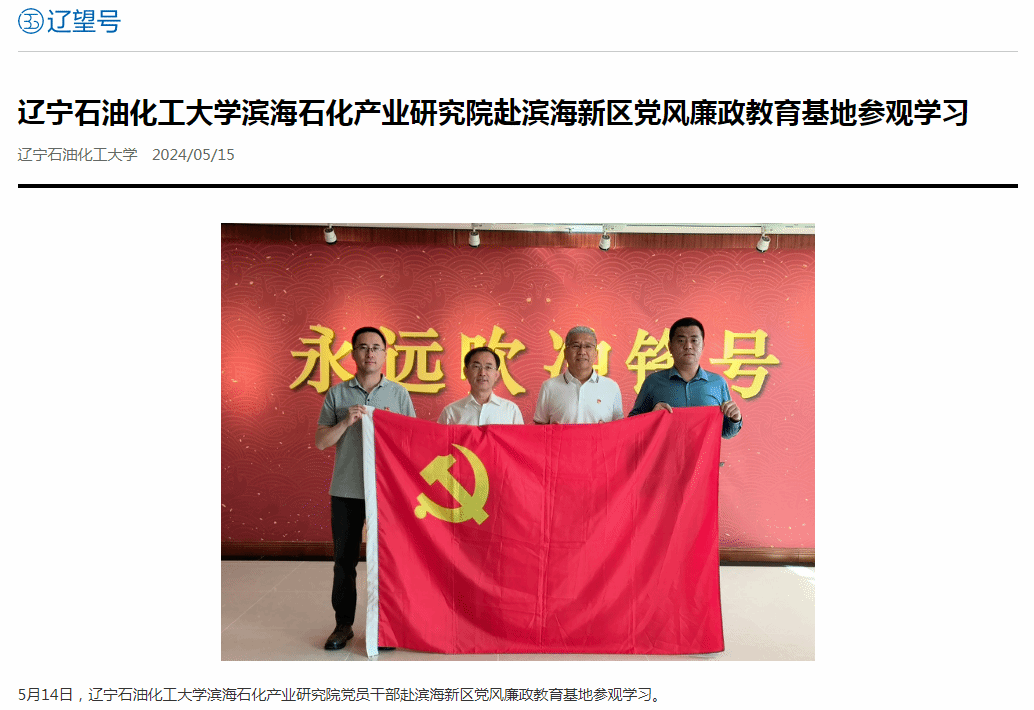 編者按:近日,中國大學生網、遼寧日報·遼望號對我校濱海石化產業研究院黨員干部赴濱海新區黨風廉政教育基地參觀學習進行了宣傳報道。現將相關報道轉載如下: