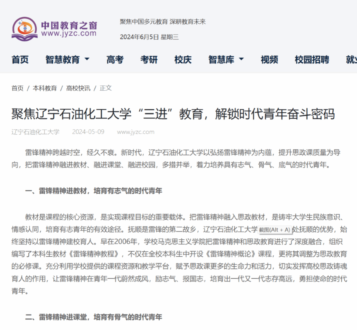 編者按:近日,中國教育之窗、中國高校之窗對我校馬克思主義學院李英華老師撰寫的文章《聚焦遼寧石油化工大學“三進”教育,解鎖時代青年奮斗密碼》進行了刊載宣傳。現將相關報道轉載如下: