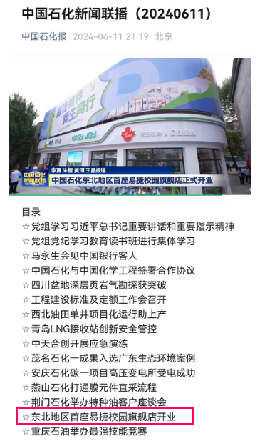 編者按:6月11日,中國石化報微信公眾號中國石化新聞聯播對我校與中國石化遼寧石油分公司攜手舉辦“易捷相伴,師生同行”中國石化遼寧石油化工大學便利店開業慶典進行了宣傳報道。現將相關報道轉載如下:
