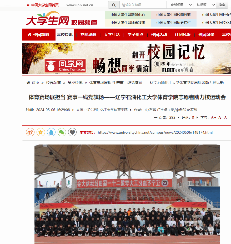 編者按:近日,中國大學生網對我校體育學院志愿者助力校運動會進行了宣傳報道。現將相關報道轉載如下: