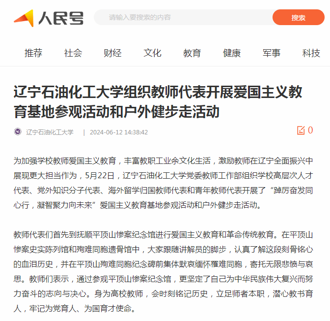 編者按:近日,中國大學生網、人民日報客戶端·人民號、遼寧日報·遼望號、搜狐號對我校組織教師代表開展愛國主義教育基地參觀活動和戶外健步走活動進行了宣傳報道。現將相關報道轉載如下: