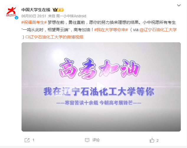 編者按:6月3日,中國大學生在線官方微博、人民日報客戶端·人民號、央視頻號、遼寧日報·遼望號、搜狐號對我校新媒體中心錄制的視頻《高考加油 我在遼寧石油化工大學等你》進行了宣傳報道。現將相關報道轉載如下: