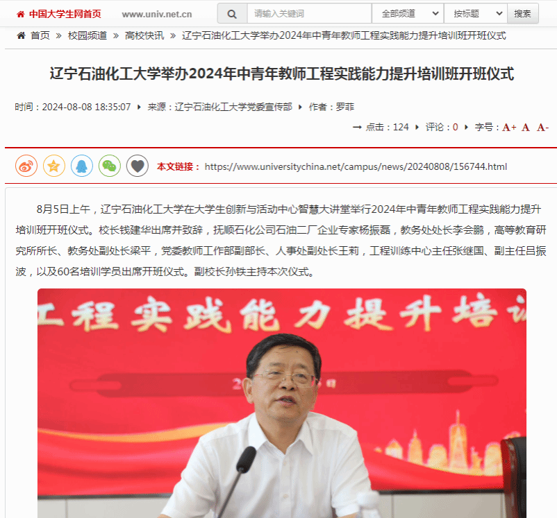編者按:8月8日,遼寧日報·遼望號、中國大學生網、人民日報客戶端·人民號、搜狐號對我校在大學生創新與活動中心智慧大講堂舉行2024年中青年教師工程實踐能力提升培訓班開班儀式進行了宣傳報道。現將相關報道轉載如下: