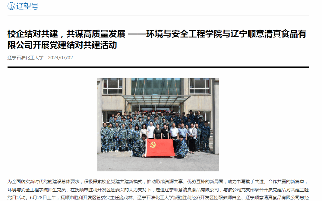 編者按:7月2日,遼寧日報·遼望號、人民日報客戶端·人民號對我校環境與安全工程學院與遼寧順意清真食品有限公司開展黨建結對共建活動進行了宣傳報道。現將相關報道轉載如下: