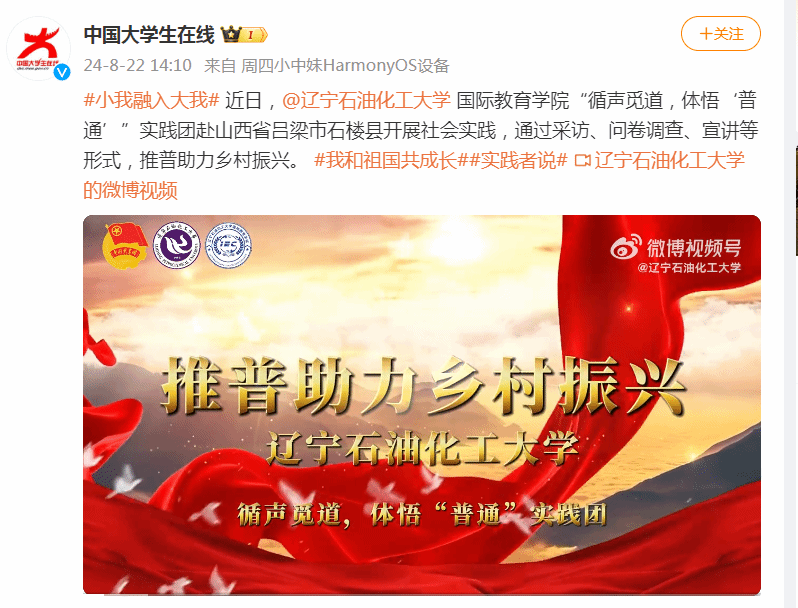 編者按:8月22日,教育部中國大學生在線官方微博、教育部中國大學生在線網站對我校國際教育學院“循聲覓道,體悟‘普通’”實踐團赴山西省呂梁市石樓縣開展社會實踐進行了宣傳報道。現將相關報道轉載如下: