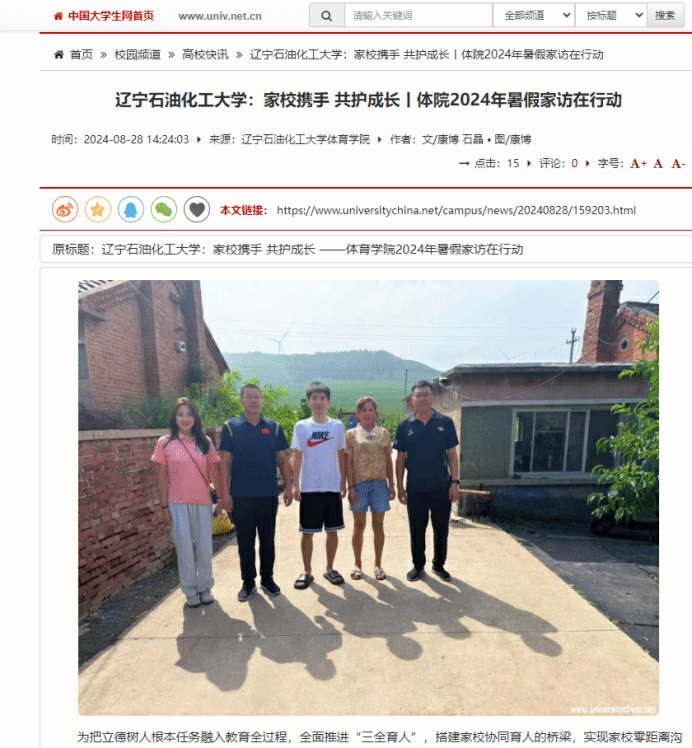 編者按:8月28日,中國大學生網對我校體育學院2024年暑假家訪活動進行了宣傳報道。現將相關報道轉載如下: