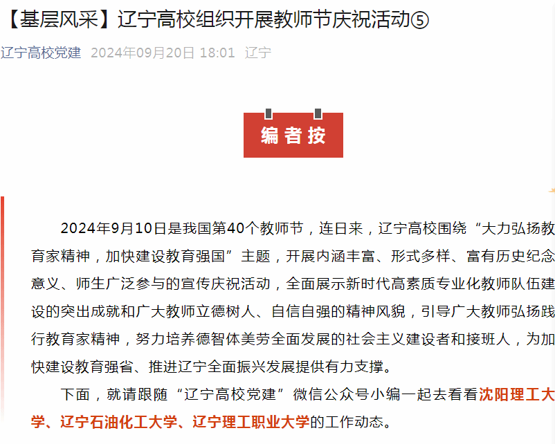 遼寧高校黨建微信公眾號:https://mp.weixin.qq.com/s/PPNjvpV_TrKWbfGPJJ6_4Q
