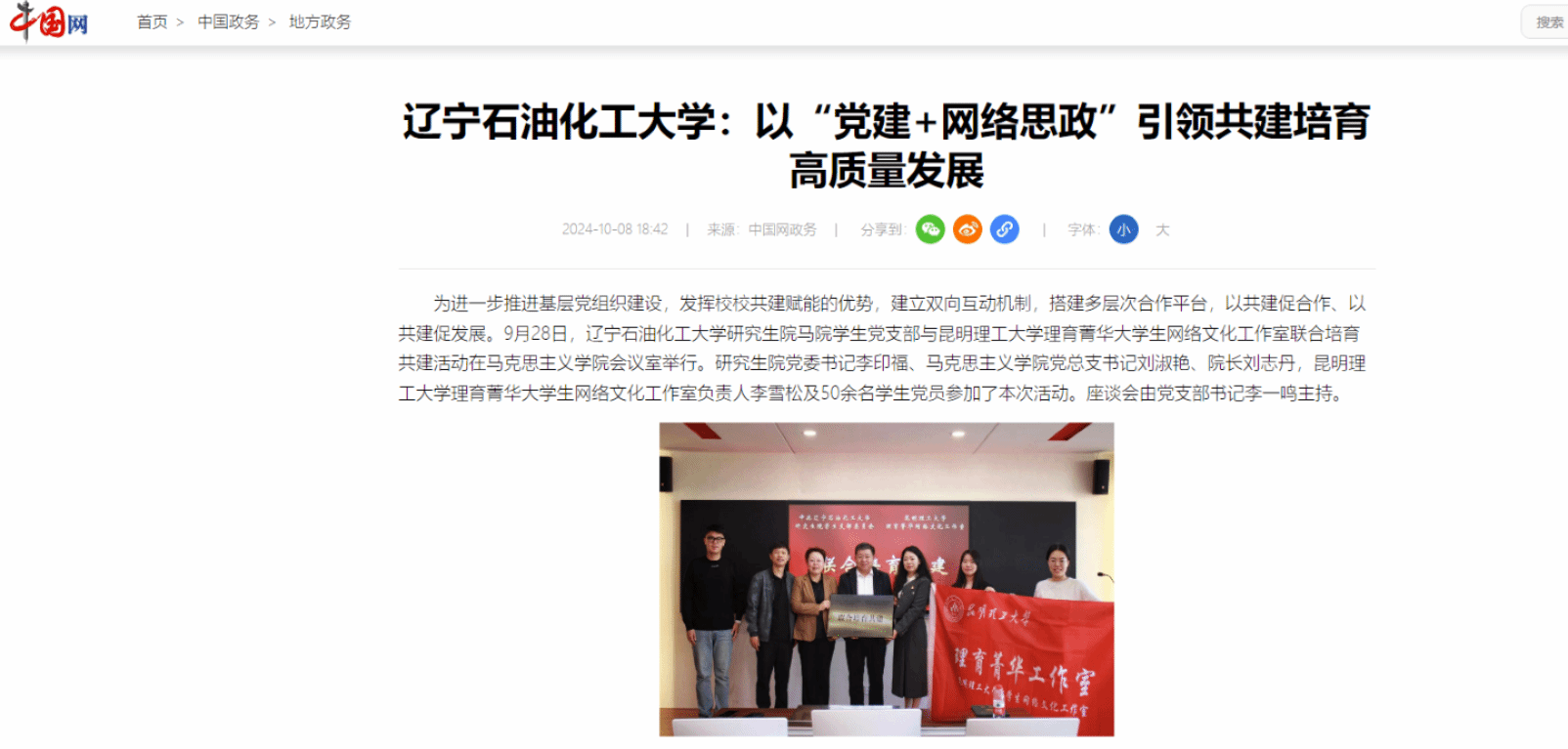 下一條: 中國周刊網:遼寧石油化工大學拓寬理論宣講“朋友圈”,雙向賦能講好中國故事