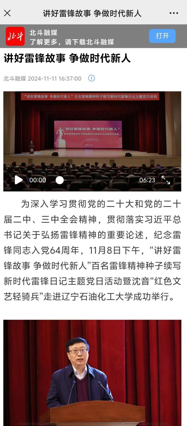 編者按: 11月8日下午,“講好雷鋒故事 爭做時代新人”百名雷鋒精神種子續寫新時代雷鋒日記主題黨日活動暨沈音“紅色文藝輕騎兵”走進遼寧石油化工大學成功舉行。北斗融媒對此進行了宣傳報道。現將相關報道轉載如下: