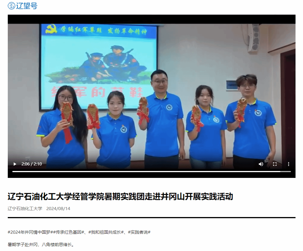 編者按:遼寧石油化工大學經管學院暑期實踐團走進井岡山開展實踐活動。教育部中國大學生在線、遼寧日報?遼望號、搜狐號對此進行了宣傳報道。現將相關報道轉載如下: