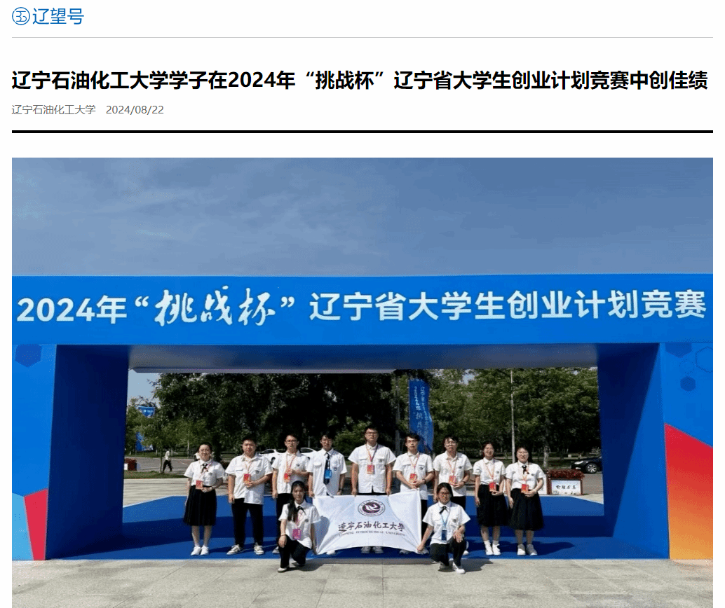 編者按:由共青團遼寧省委員會、遼寧省教育廳、遼寧省科學技術廳、遼寧省人力資源和社會保障廳、遼寧省知識產權局、遼寧社會科學院、遼寧省科學技術協會、遼寧省學生聯合會主辦,由沈陽化工大學和遼寧省交通高等專科學校共同承辦的2024年“挑戰杯”遼寧省大學生創業計劃競賽決賽落下帷幕。遼寧石油化工大學24件作品喜獲佳績,共斬獲金獎4項、銀獎6項、銅獎14項,并有1項作品入圍國賽。中國大學生網、遼寧日報?遼望號對此進行了宣傳報道。現將相關報道轉載如下: