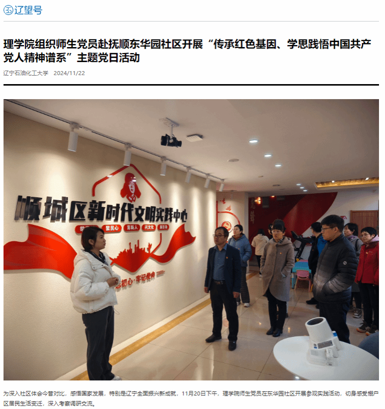 編者按:近日,理學院師生黨員在東華園社區開展參觀實踐活動,切身感受棚戶區居民生活變遷,深入考察調研。遼寧日報?遼望號對此進行了宣傳報道。現將相關報道轉載如下: