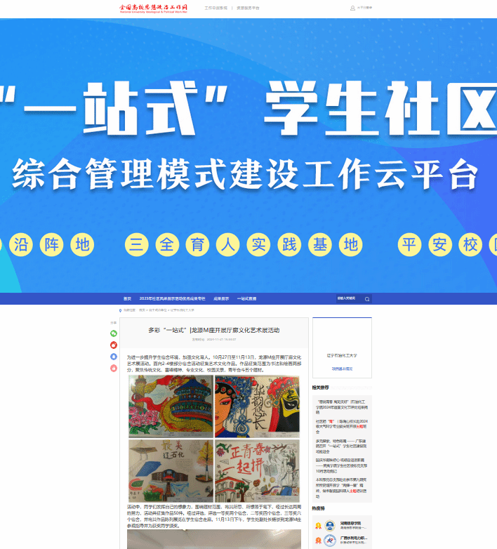 編者按:遼寧石油化工大學土木工程學院為進一步提升學生宿舍環境,加強文化育人,在龍源M座學生公寓開展廳廊文化藝術展活動。全國高校思想政治工作網對此進行了宣傳報道。現將相關報道轉載如下: